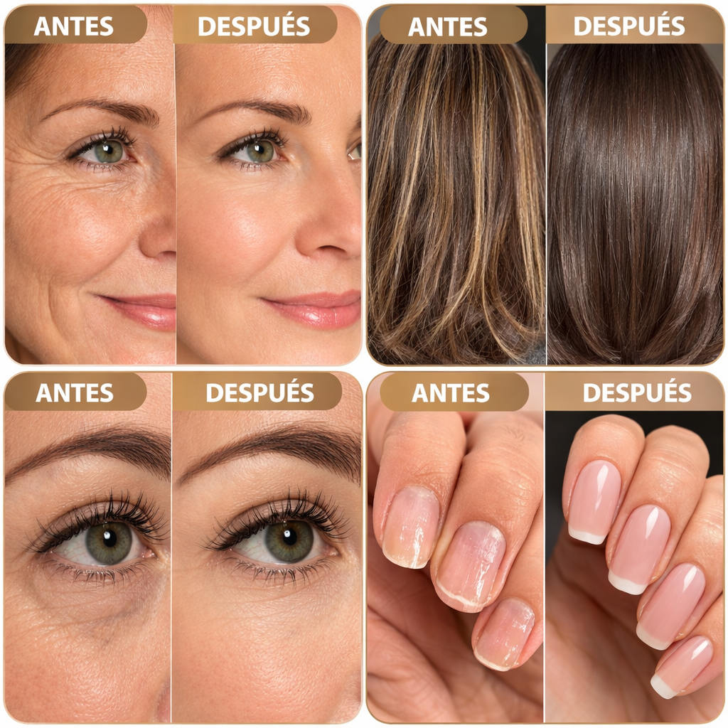 El colágeno es una proteína natural del cuerpo que ayuda a mantener la piel firme, fortalecer el cabello, las uñas, y dar soporte a huesos y articulaciones.